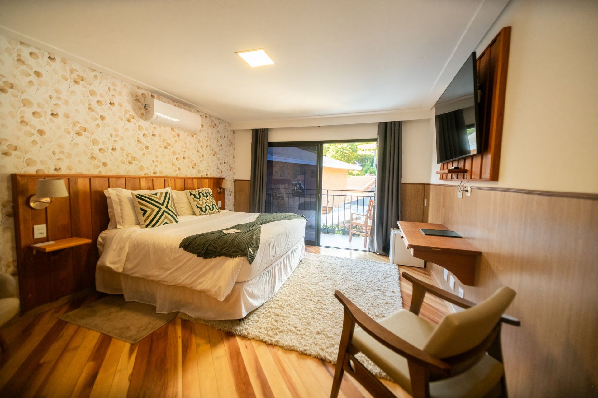 Suíte Standard é ideal para casais que buscam conforto e praticidade durante a estadia. O quarto possui